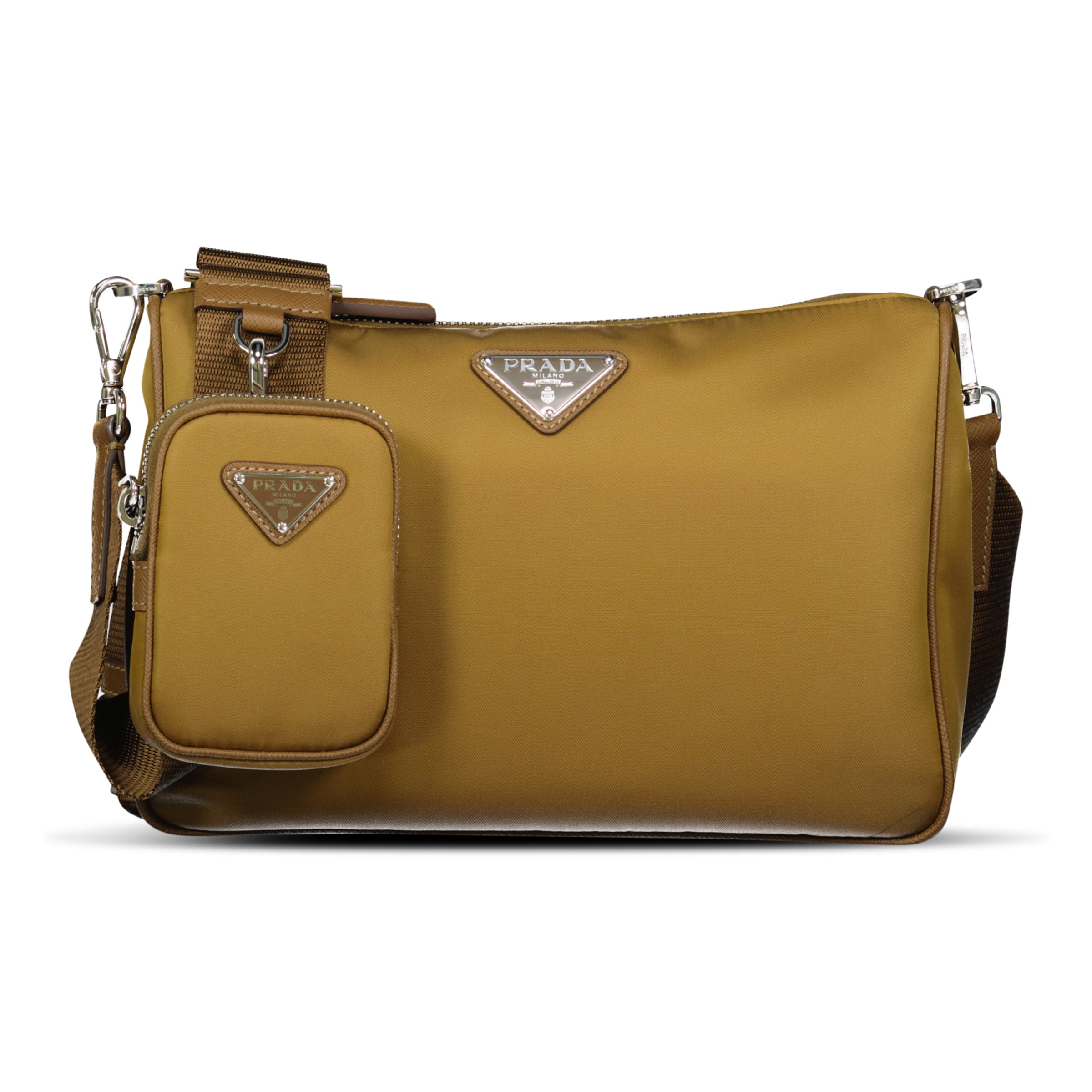 Prada Re-Nylon Leather Shoulder Bag Brown