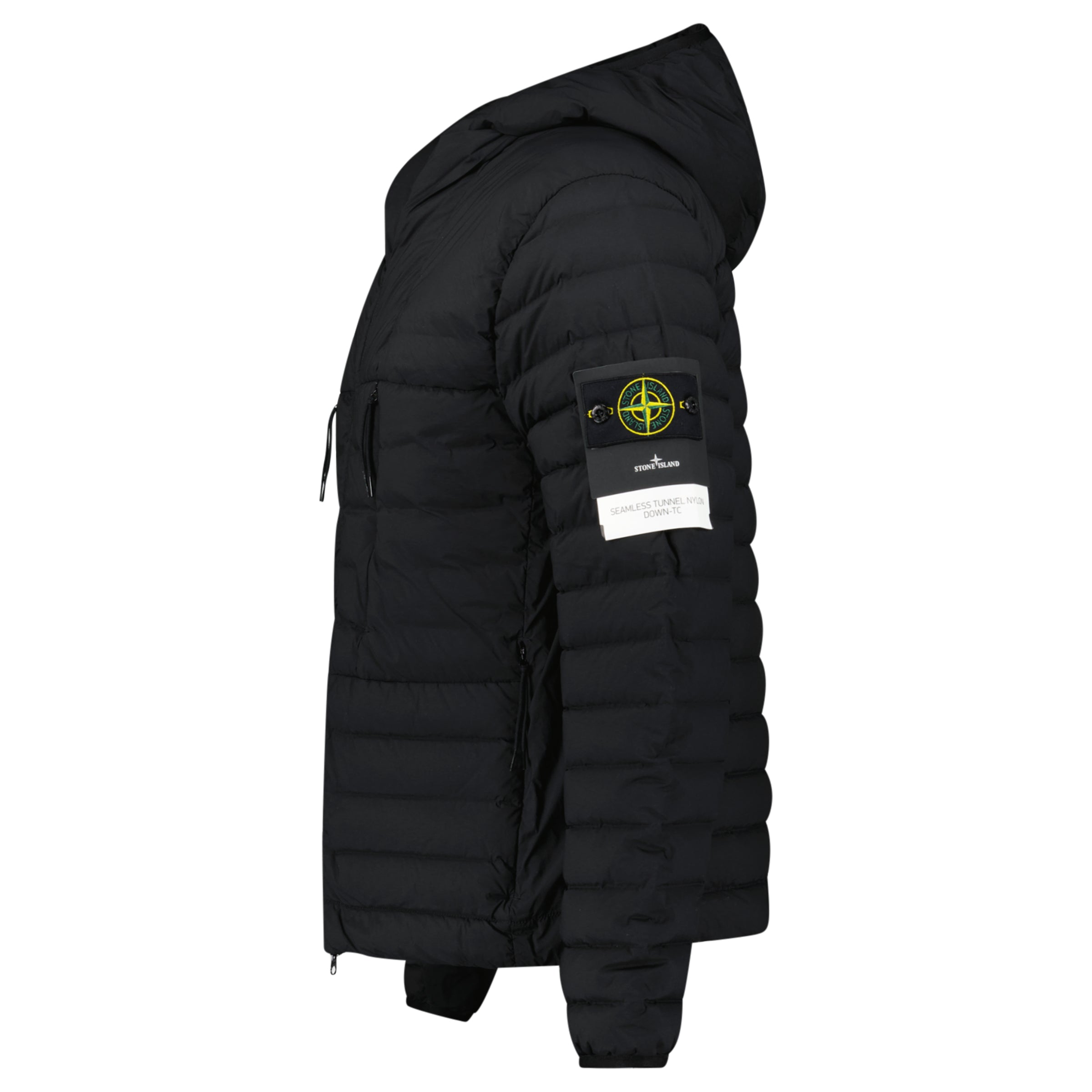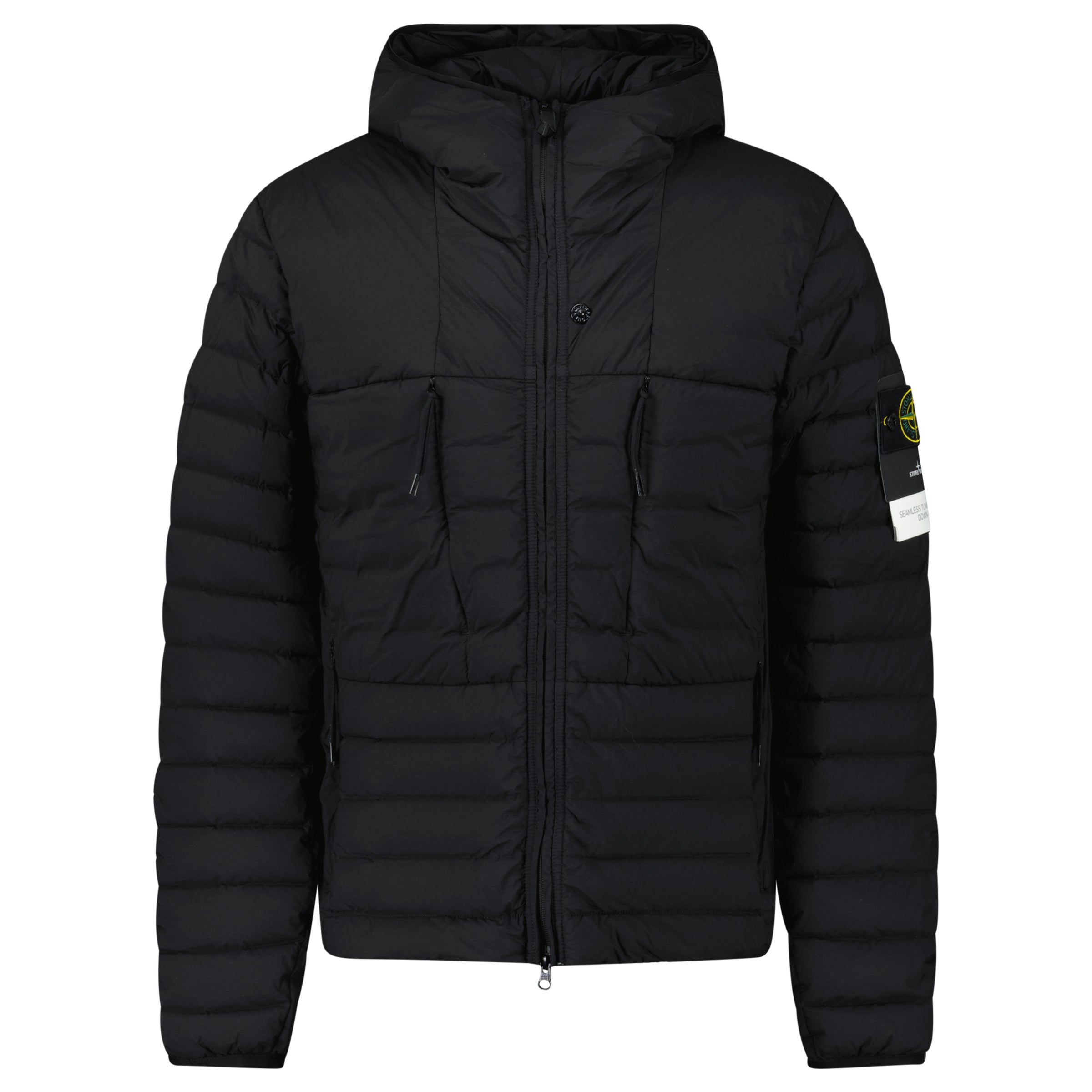 Discover the refined craftsmanship of the Stone Island Seamless Tunnel Down Jacket in Black, a true expression of innovation and luxury. Expertly crafted from a single-layer light stretch nylon fabric, it features seamless feather tunnels that provide exceptional down hold and insulation without adding bulk. The hooded silhouette includes a padded hood with adjustable drawcords, elasticated cuffs and hem for a tailored fit, and a two-way front zip for comfort and versatility. Finished with the iconic Stone Island compass badge on the left sleeve, this jacket combines cutting-edge performance with unmistakable designer style.