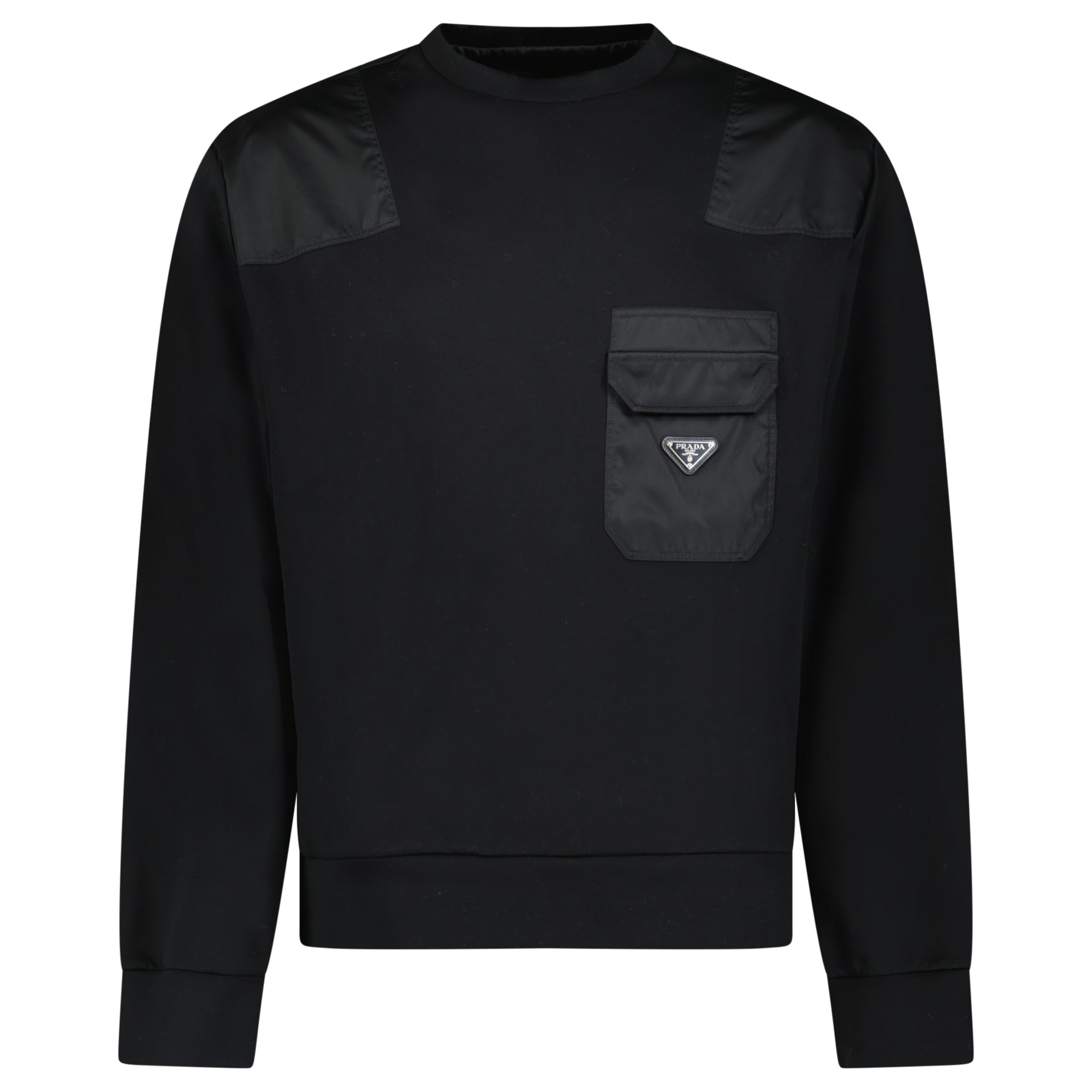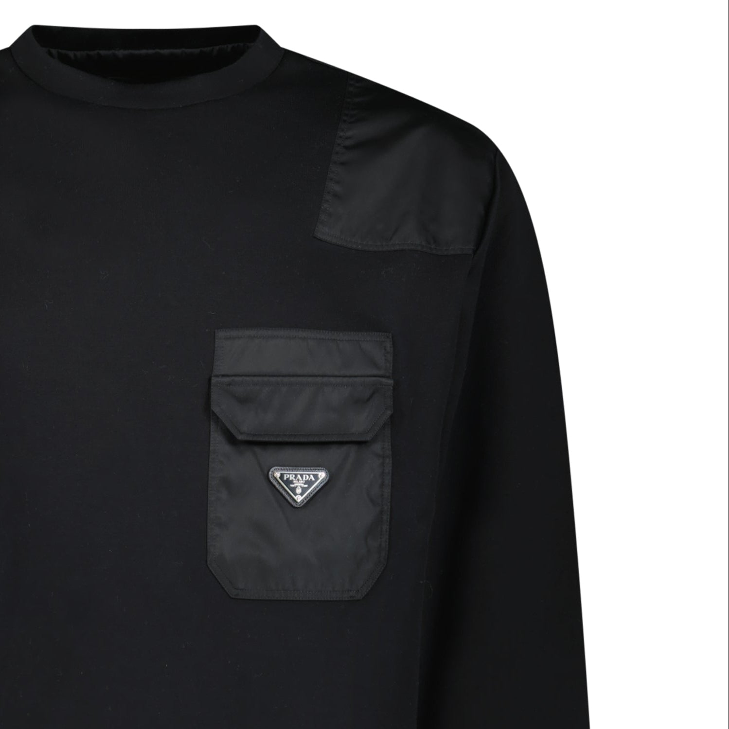 Elevate your everyday wardrobe with the Prada Cotton & Nylon Sweatshirt in Black. Crafted from a premium blend of cotton and nylon, this refined piece combines comfort with Prada’s signature luxury aesthetic.