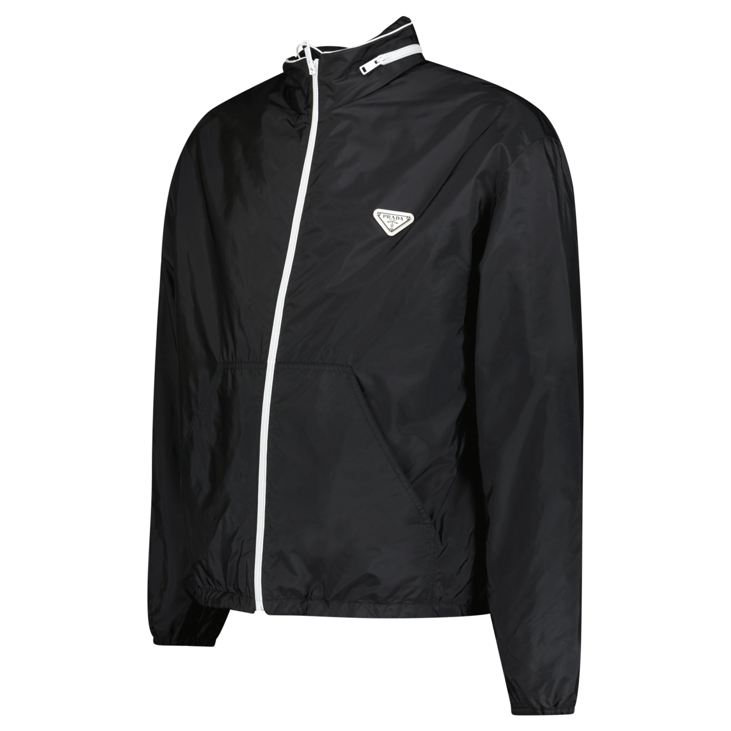 Designed with a sleek windbreaker silhouette, the jacket offers protection from the elements while maintaining a clean, modern aesthetic. The signature Prada logo detail adds a subtle yet recognisable designer finish, while the lightweight construction makes it ideal for layering across seasons
