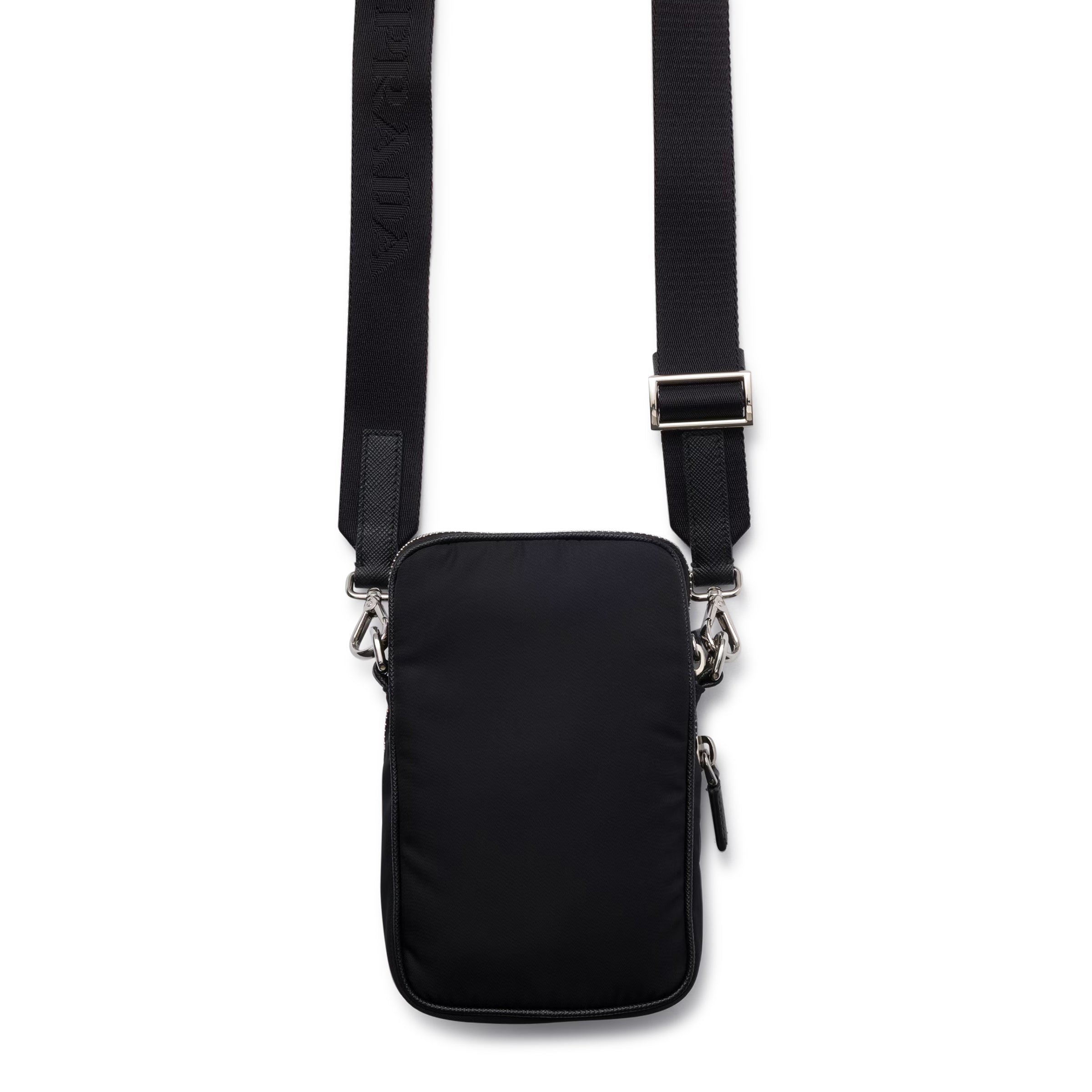 Carry your essentials in refined luxury with the Prada Re-Nylon & Saffiano Leather Smartphone Case in Black. Designed using Prada’s innovative Re-Nylon fabric, made from recycled materials, this sleek accessory blends sustainability with iconic Italian craftsmanship.